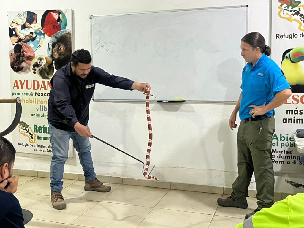 Durante la formación, aprendieron técnicas seguras y efectivas para el manejo de animales silvestres, priorizando tanto el bienestar de las especies como la seguridad del personal.