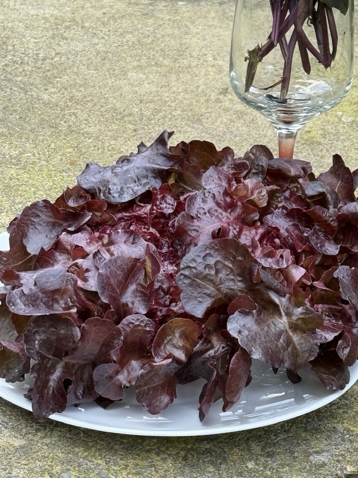 Albahaca para la mujer flaca y más fresca que una lechuga… Hoy me sorprendieron los tonos morados de las hortalizas. La lechuga morada rizada y la albahaca del mismo color. Los nutricionistas nos recomiendan incluiren nuestra dieta las verduras por colores.