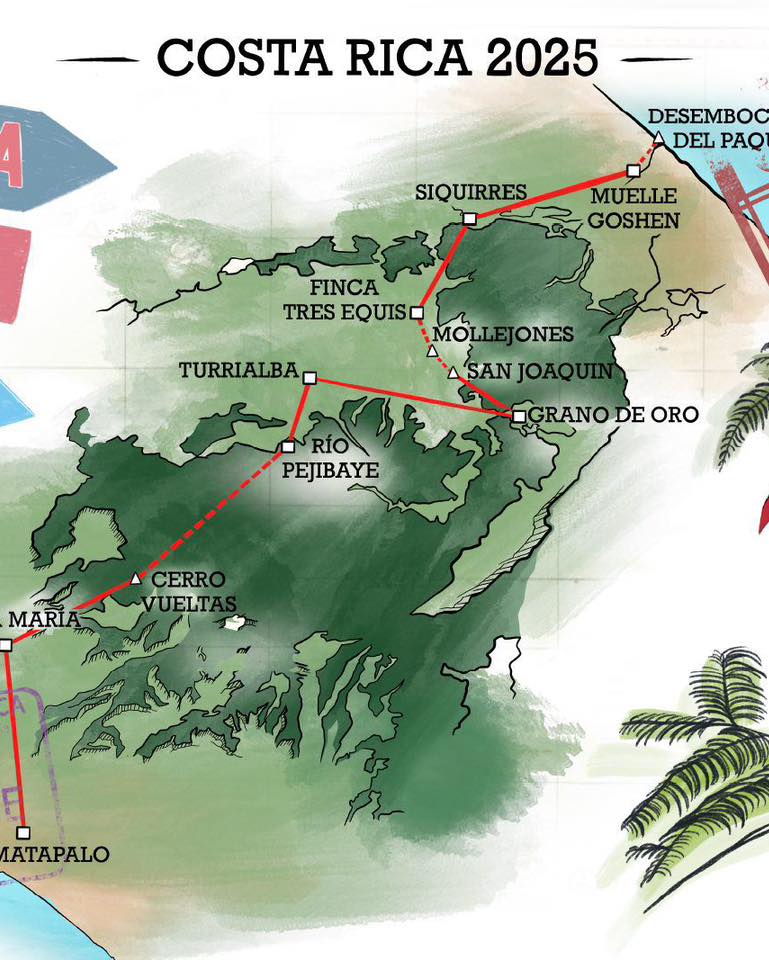 El inicio lo realizarán en Playa Matapalo y continuarán en otros destinos como Santa María, el Cerro Vueltas, el Río Pejibaye, Turrialba, Mollejones, Finca Tres Equis, Siquirres, la Desembocadura del Río Pacuare y otras localidades.