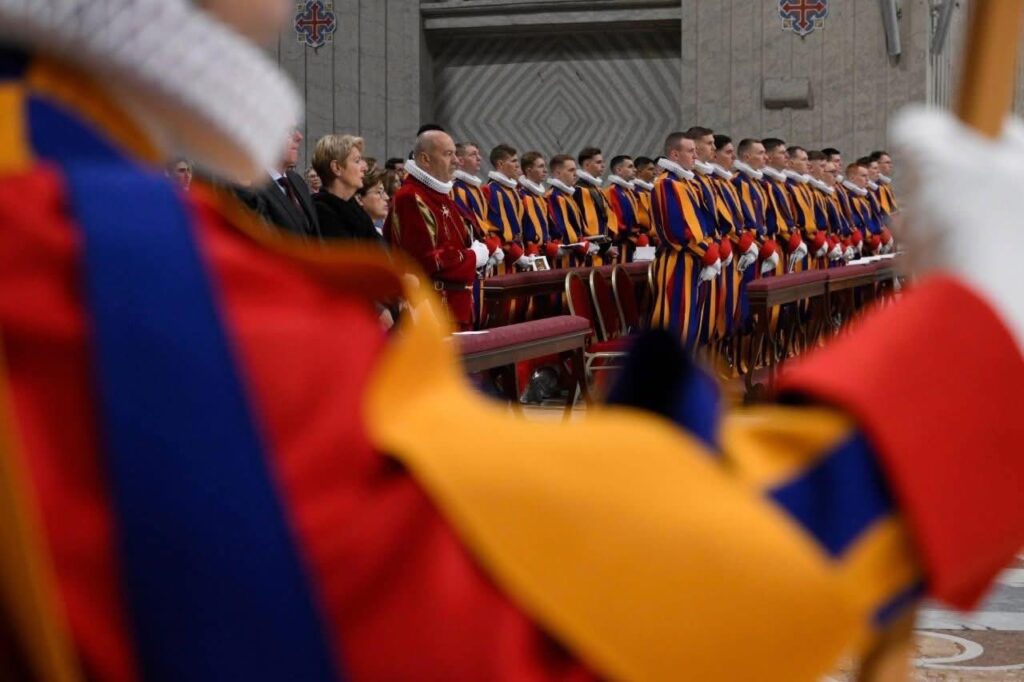 El acto destacó la fe, la disciplina y el compromiso de servicio de los jóvenes guardias, reafirmando una tradición que une honor y devoción al Sucesor de Pedro.